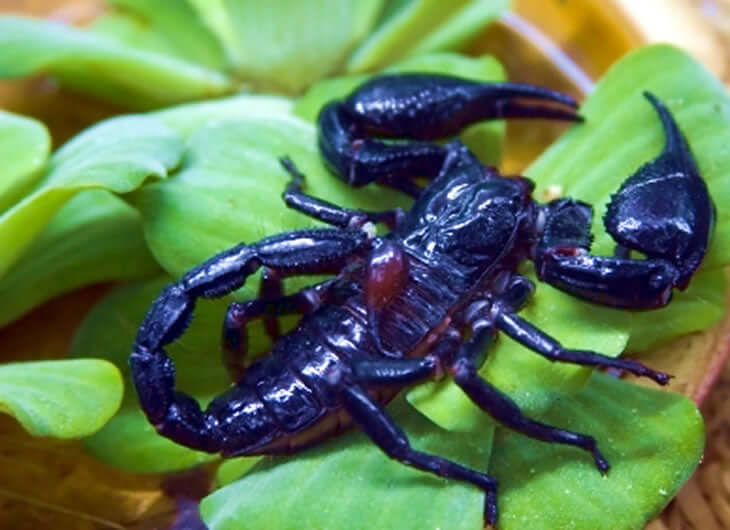 Asian forest scorpions are carnivorous and have a diet consisting of live insects. The core of the livefood diet should be high in protein and relatively easy to digest. We have found that brown crickets are the most readily accepted, but you can also use black crickets or locusts (hoppers).