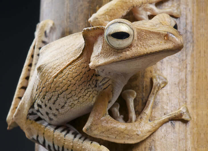 Borneo long ear frogs are an arboreal frog and they do like to climb on top of things to survey their surroundings. The terrarium should be decorated with various pieces of wood or vine to enable them to do this.
