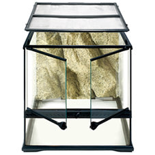 The terrarium has a mesh lid which will reduce the strength of UVB being put into the enclosure so we would recommend a wide covering of 5% UVB or a smaller covering of 6-7% UVB. Terrarium canopies are currently available in 2 forms, compact top canopies or T5 canopies. Compact top canopies typically hold E27 screw fit lamps and can be matched with compact UVB lamps or low wattage basking lamps. T5 canopies are a newer solution and will normally hold a single T5 UVB tube.