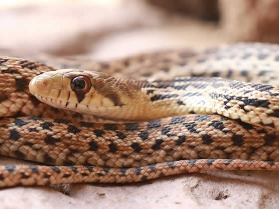 Gopher snakes are a fairly large snake from the western coast of America. They have quite a narrow head and they tend to be a bit heavier than other similar snakes. They are normally beige or faintly yellow with black or dark brown patterns running the length of the snake. We find them to be a very curious and active snake, perfect for intermediate reptile keepers.