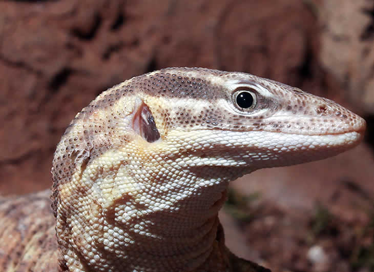 Though the Ackie monitor is a basking species it may desire some time in an area with no light. To achieve this we would provide partial and full hiding spots throughout the enclosure.
