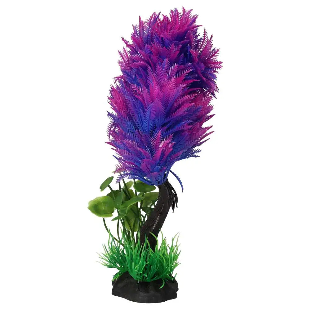 The AquaSpectra aquatic artificial plant adds bright, multi-coloured leaves to your aquarium or terrarium, bringing vibrant visual interest. Its detailed and realistic design contributes texture to your display. With a strong base for stability and made from durable plastic, it is ideal for both aquatic and terrestrial environments. The leafy, tree-like structure enhances the habitat while offering a natural shelter for your aquatic animals.
