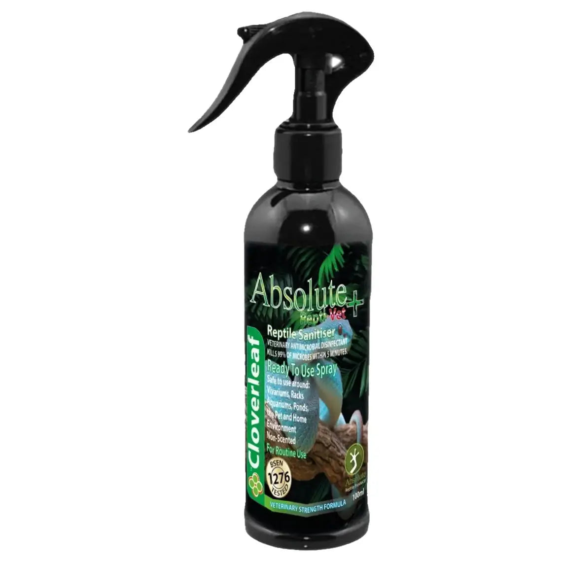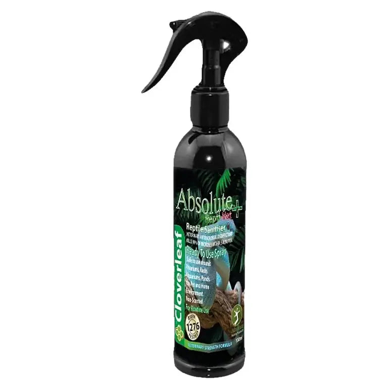 Absolute Reptile Sanitiser is ready to use rapid-acting biocide for protection against algae, yeast, Bacteria (Gram+/-Gram), viruses and fungal growth. Absolute Reptile Sanitiser Is used for hard surface disinfection and cleaning of lightly soiled areas such as Quarantine areas, vivariums, snake racks and food preparation areas. It is also for the sterilisation of animal-related equipment.