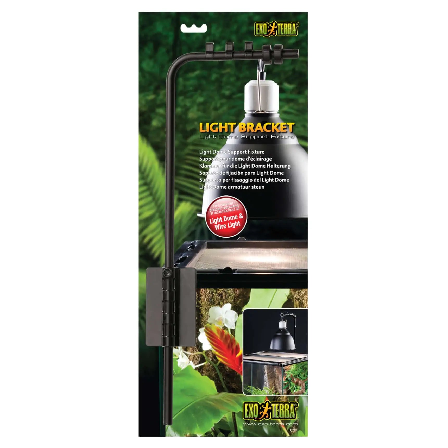 The Exo Terra Light Bracket is designed to suspend the Exo Terra Light Dome or other types domes or wire fixtures above any Exo Terra Natural Terrarium or other glass terrarium securely. The Exo Terra Light Bracket easily adjusts to fit most types of fixtures or can be used to regulate heat/light according to required terrarium conditions by moving the rubber washers. Since the bulbs do not need to be moved after installation, together with increased ventilation, the light bulbs' (basking lamps, Solar Glo, etc.) life span is drastically improved.