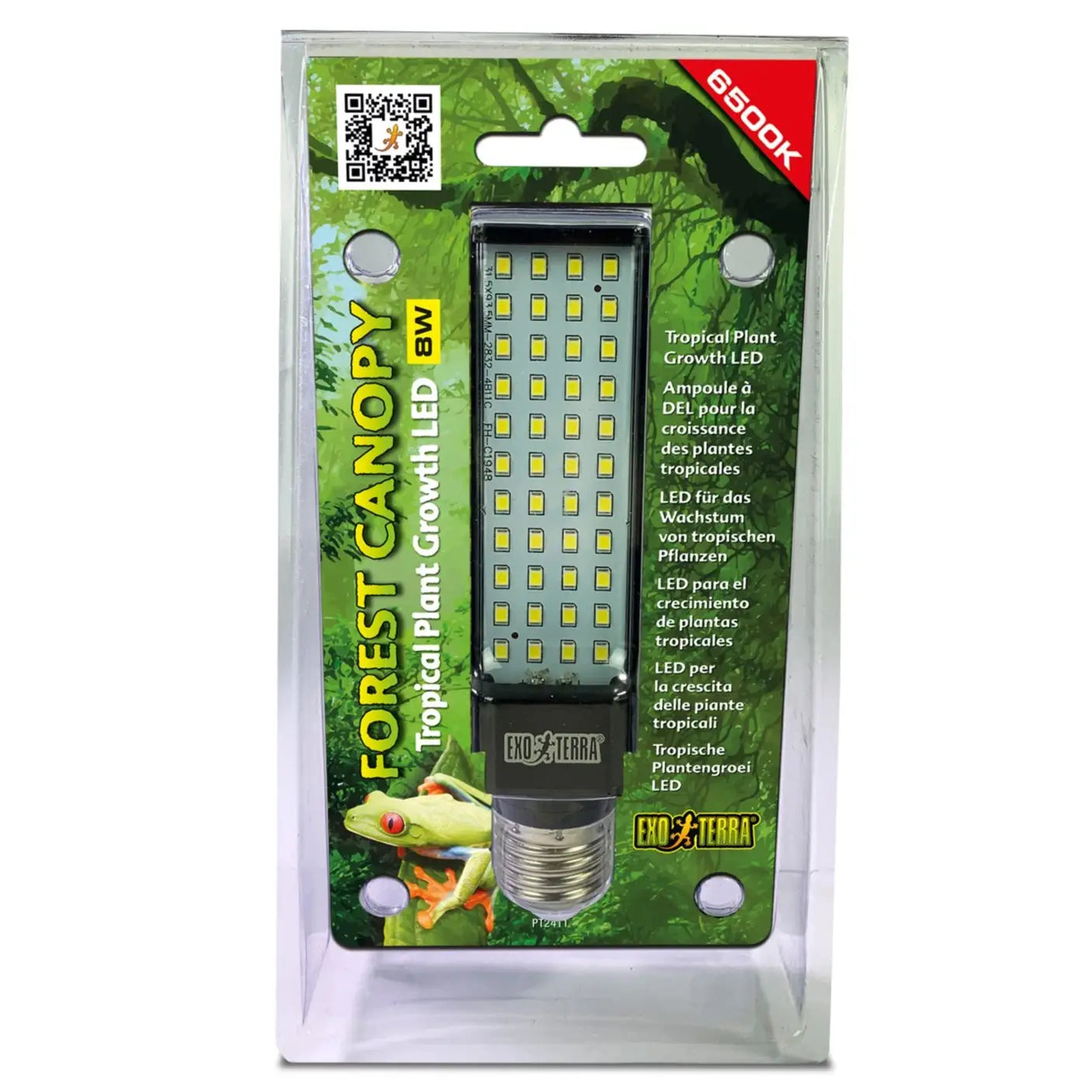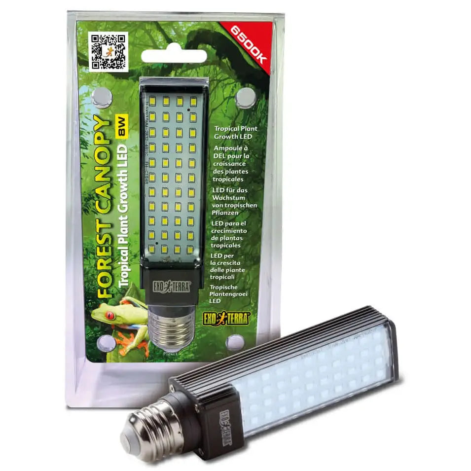 Exo Terra's energy efficient, self-ballasted and screw-based Forest Canopy is an ideal light source for bio-active planted terrariums. Its high visible light levels contribute to the physiological well-being of your reptiles, amphibians and invertebrates and lets them experience and perceive the colours in their environment more naturally. The Forest Canopy's specific composition of wavelengths in combination with the high light intensity contributes significantly to sustained, lush plant growth. The Forest Canopy's 6500K simulates the unfiltered sunlight conditions in the Tropical Forest Canopy and Orchids, Bromeliads, Tillandsias (air plants), carnivorous plants, mosses and lichen living in the upper layers of the forest thrive under its strong Photosynthetic Active Radiation. Its wavelengths, composed of blue, green, red and even traces of far-red regulate a healthy growth rate and colouration of the leaves, stems, and roots and even promote flowering. The base of the lamp can be rotated at a 300-degree angle to direct the wide beam of light to a specific area in the terrarium where lush plant growth is desired.