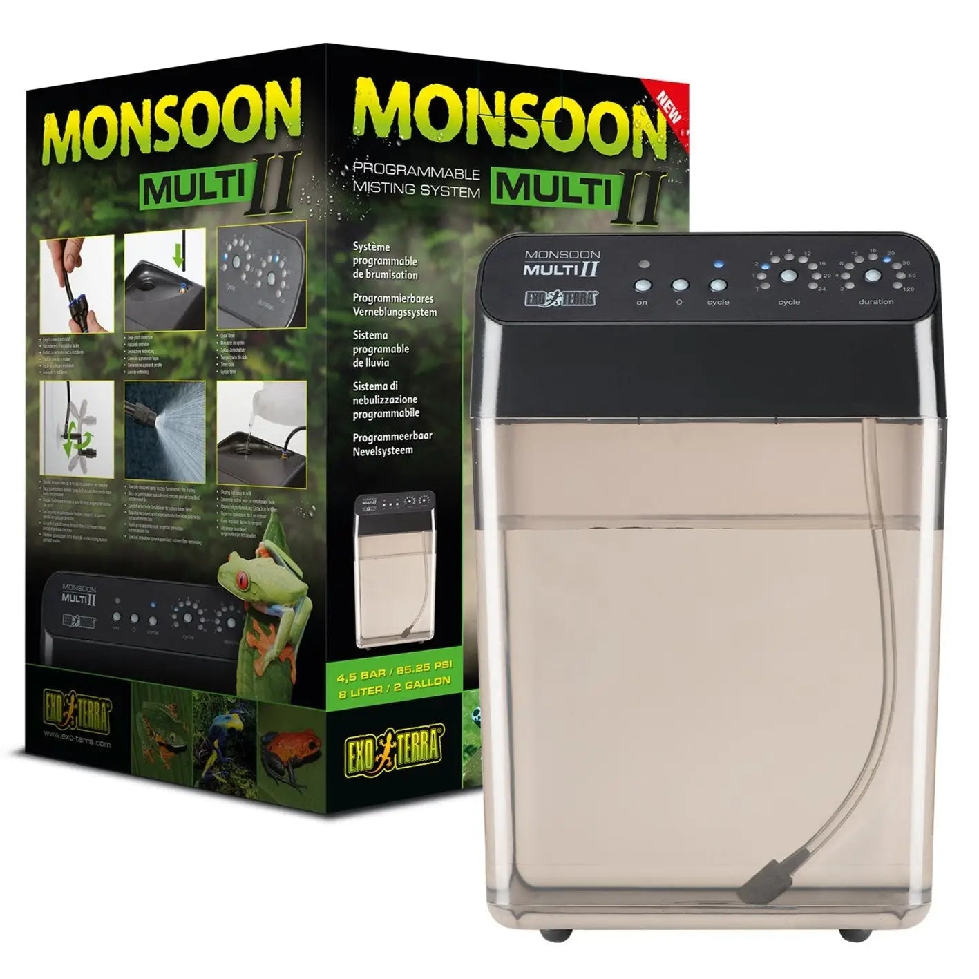 The Exo Terra Monsoon Multi II is a programmable misting systems suitable for all types of terrariums and green-houses.