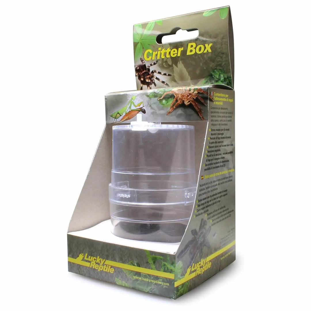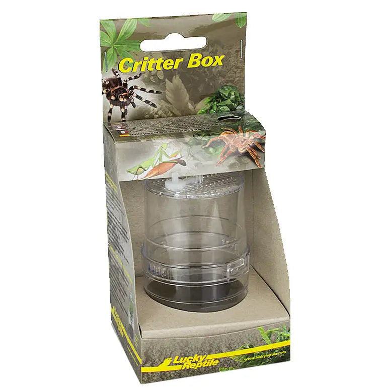 This mini plastic terrarium is ideal for keeping or raising many mini-beasts such as mantids and arboreal spiderlings etc. The two piece detachable design is ventilated on the top and also has adjustable side ventilation. The pluggable feeding hatch in the top allows food items to be introduced and is accessible when in the open-fronted display box. This unique design enables multiple critter boxes to be set up with substrate and decor to contain a range of invertebrate pets to create a stunning display either on the shelf or on peg board hangers so they can be sold to your customers as a complete unit.