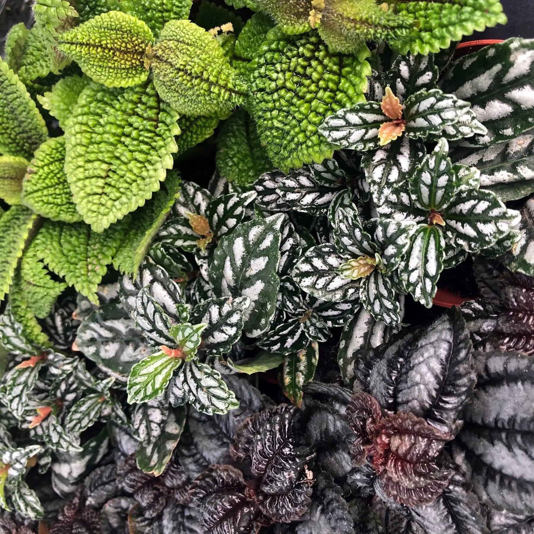 Radiator Plants are low growing, clump forming plants used to create interest in the foreground of a forest terrarium. They need a rich, well drained soil which is constantly moist and high humidity. Given these conditions then they are happy to grown in bright light or shade, but avoid direct hot light shining on them as this will quickly scorch the leaves.