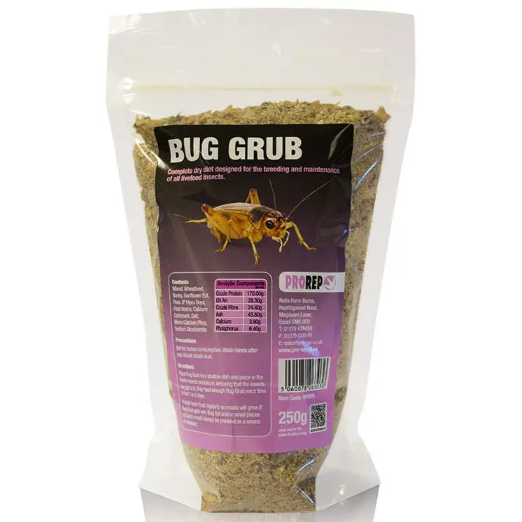 ProRep Bug Grub is a complete dry diet, high in calcium and protein, designed for the breeding and maintenance of all livefood insects.