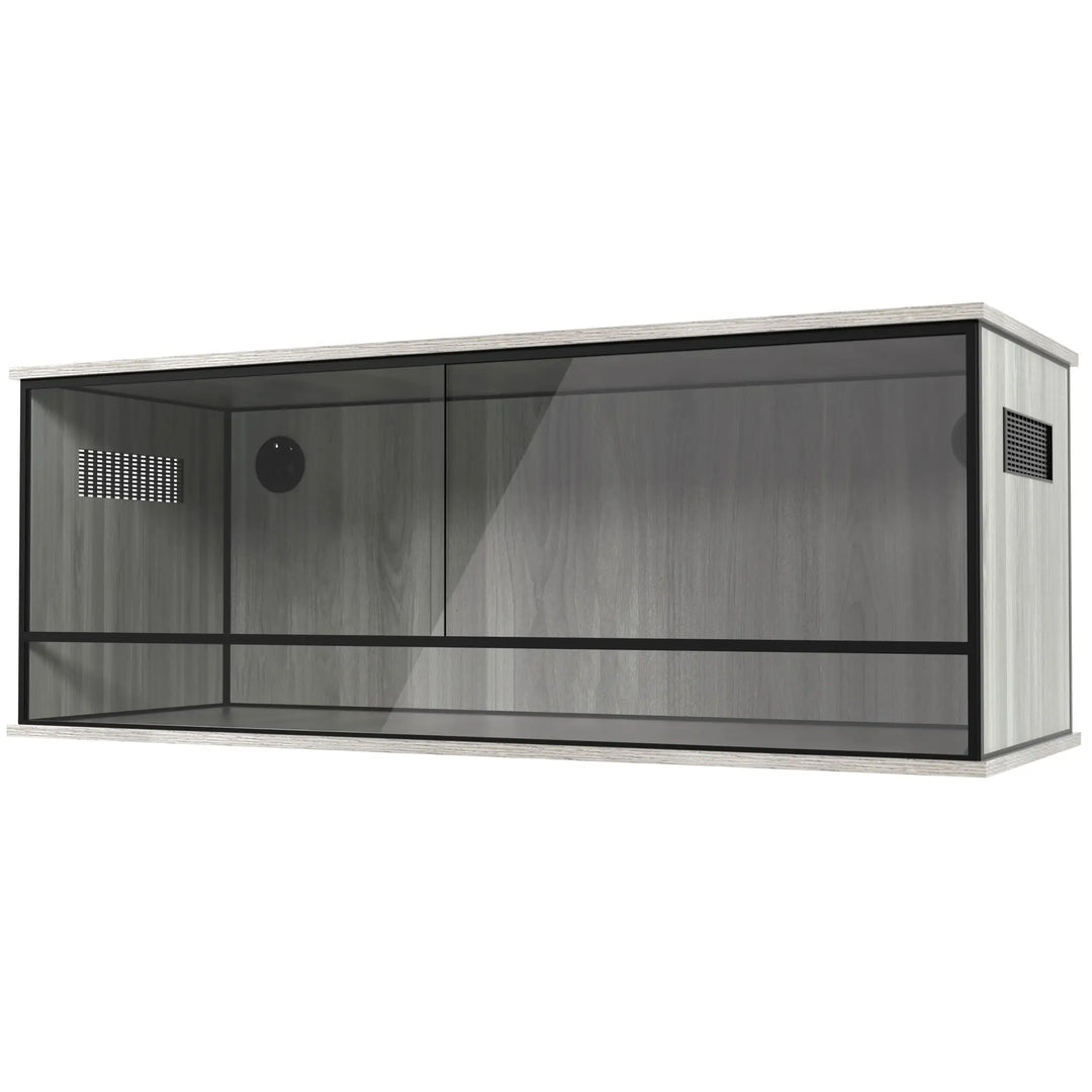 Owing to the aluminium corner posts, there is no longer a need to use large obstructive support plinths on the front of the enclosure. For maximum visibility, the ProRep vivarium range includes a bottom strip of glass, topped with a black runner for the sliding glass doors, which extend all the way to the ceiling. The front profile is visually stunning when fully decorated.