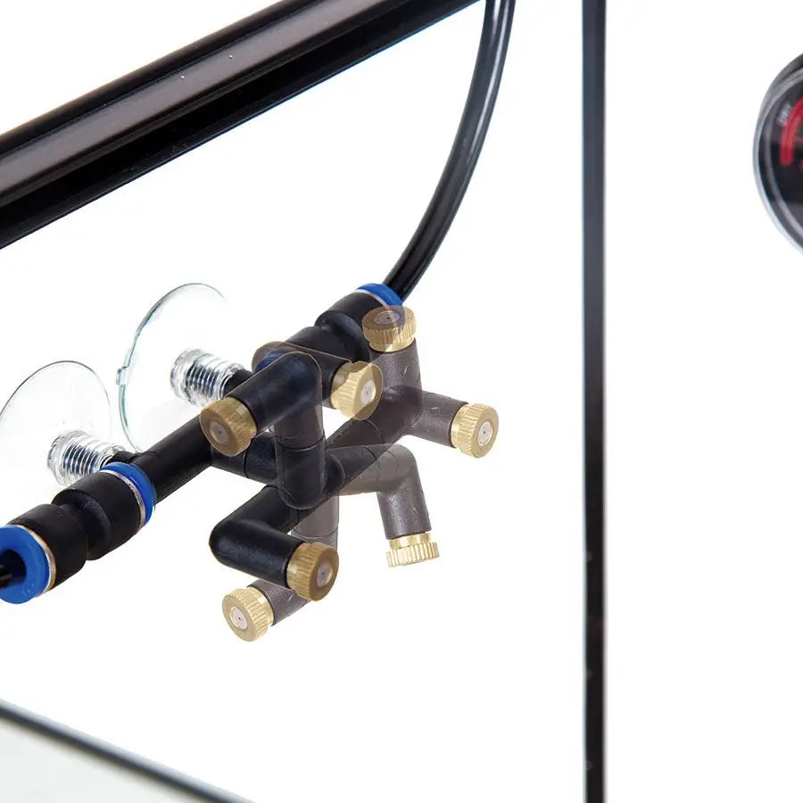 The ReptiZoo High Pressure Misting System features a 10-litre water reservoir with a timed misting system and 2 nozzles. An ideal misting system for a single terrarium, but can also expand up to 8 nozzles for a larger terrarium, or multiple terrarium control from a single system.