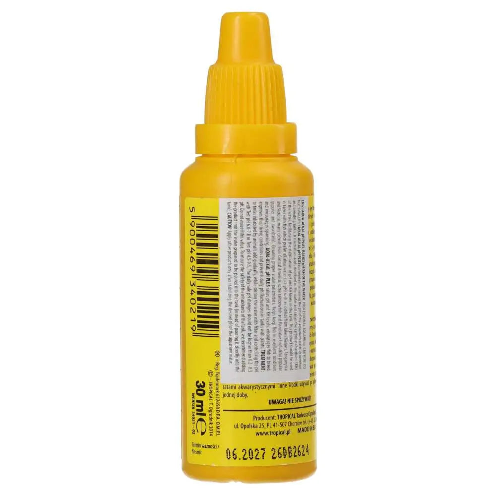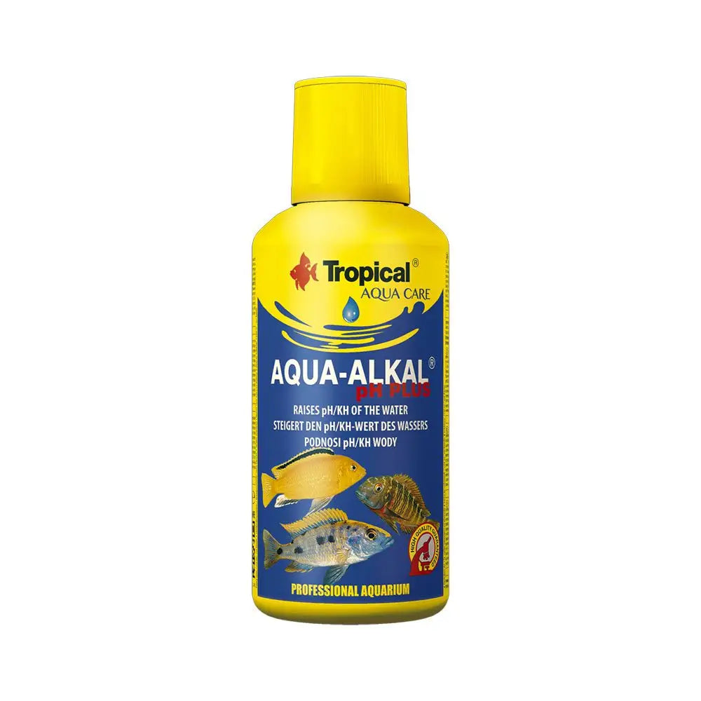 Tropical Aqua-Alkal pH Plus water treatment is a preparation for raising the pH level in freshwater aquariums. Alkaline water is characteristic of many biotopes inhabited by popular aquarium fish, such as Malawi cichlids (mbuna group), Tropheus from Lake Tanganyika, and cichlids from Central America. Maintaining a high pH level is essential for the well-being of many fish species, as it promotes good health, enhances coloration, and supports spawning. Tropical Aqua-Alkal pH plus prevents pH fluctuations resulting from natural processes occurring in the tank.