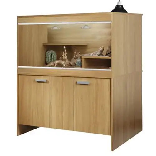 The Vivexotic AAL Cabinet is a high quality affordable addition to your vivexotic bearded dragon starter kit. The units attach seemlessly to the corresponding vivarium and provide additional height, stability and storage. Each unit includes 2 swinging front doors a bottom shelf and elevated shelf.